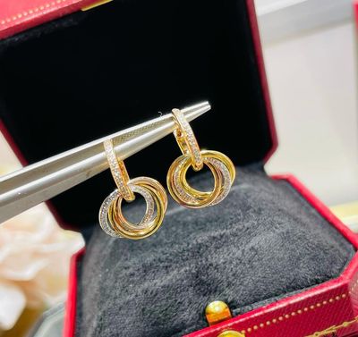 Elegant Drop Earrings with Red Enamel and Crystal Accents