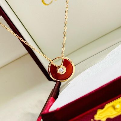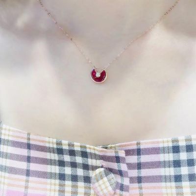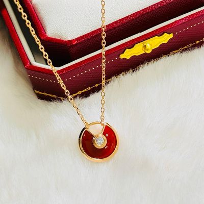 Elegant Red Enamel Disc Pendant Necklace in Gold