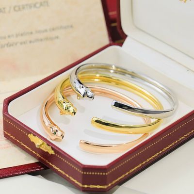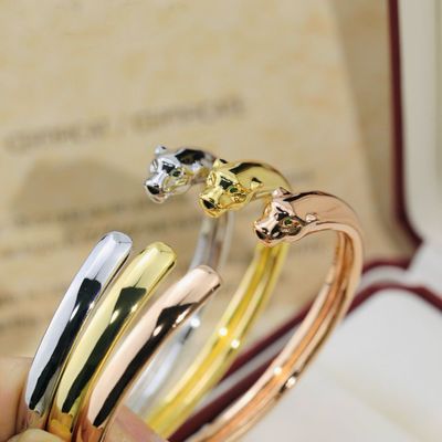 Elegant Panther Head Open Cuff Bangles – Trio Set in Silver, Gold, and Rose Gold